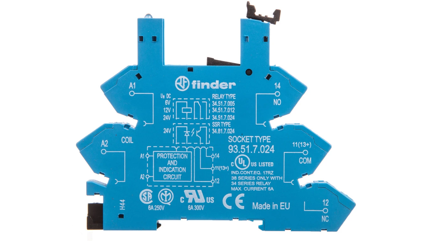 Wąskoprofilowe gniazdo 6,2mm do przekaźników serii 34 6-24V DC 93.51.7.024