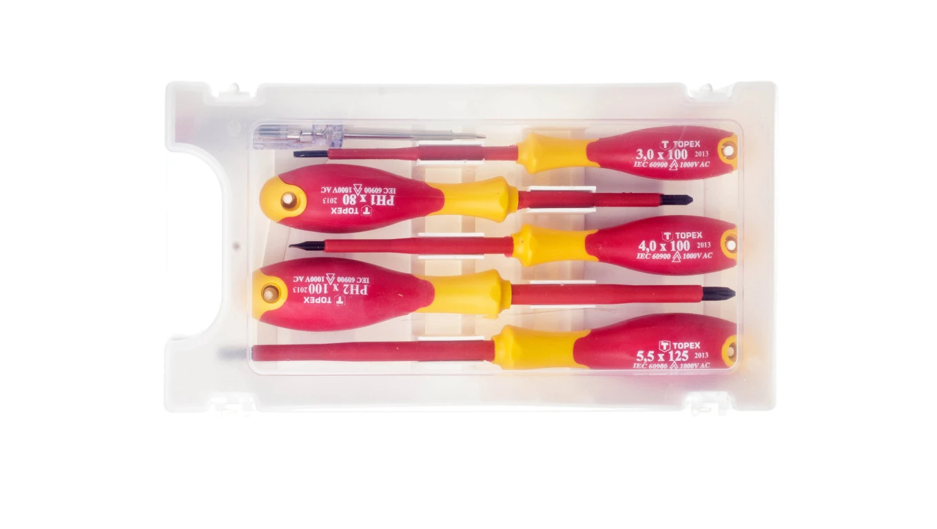 Wkrętaki elektrotechniczne płaskie 3x100mm/ 4x100mm/ 5,5x150mm/ PH1x80/ PH2x100mm 1000V 39D150 /6 szt./