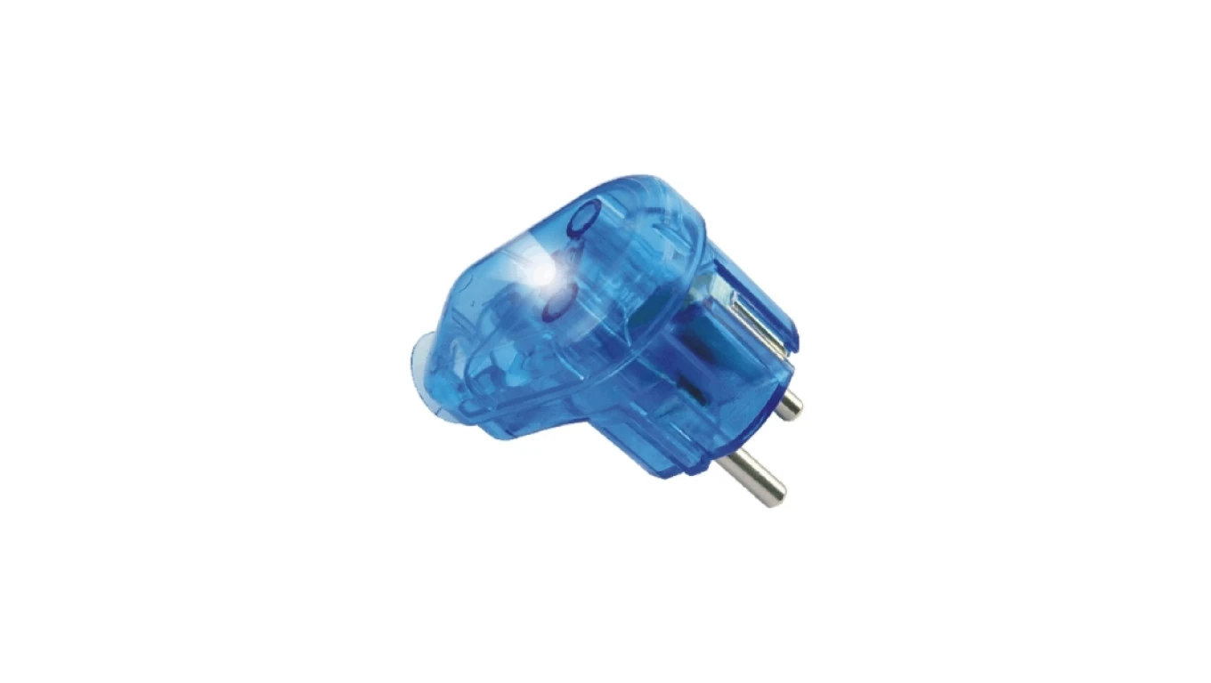Wtyczka kątowa z/u Uni-Schuko 16A 250V podświetlana rozbieralna niebieska WT-16U/S-V NIEB