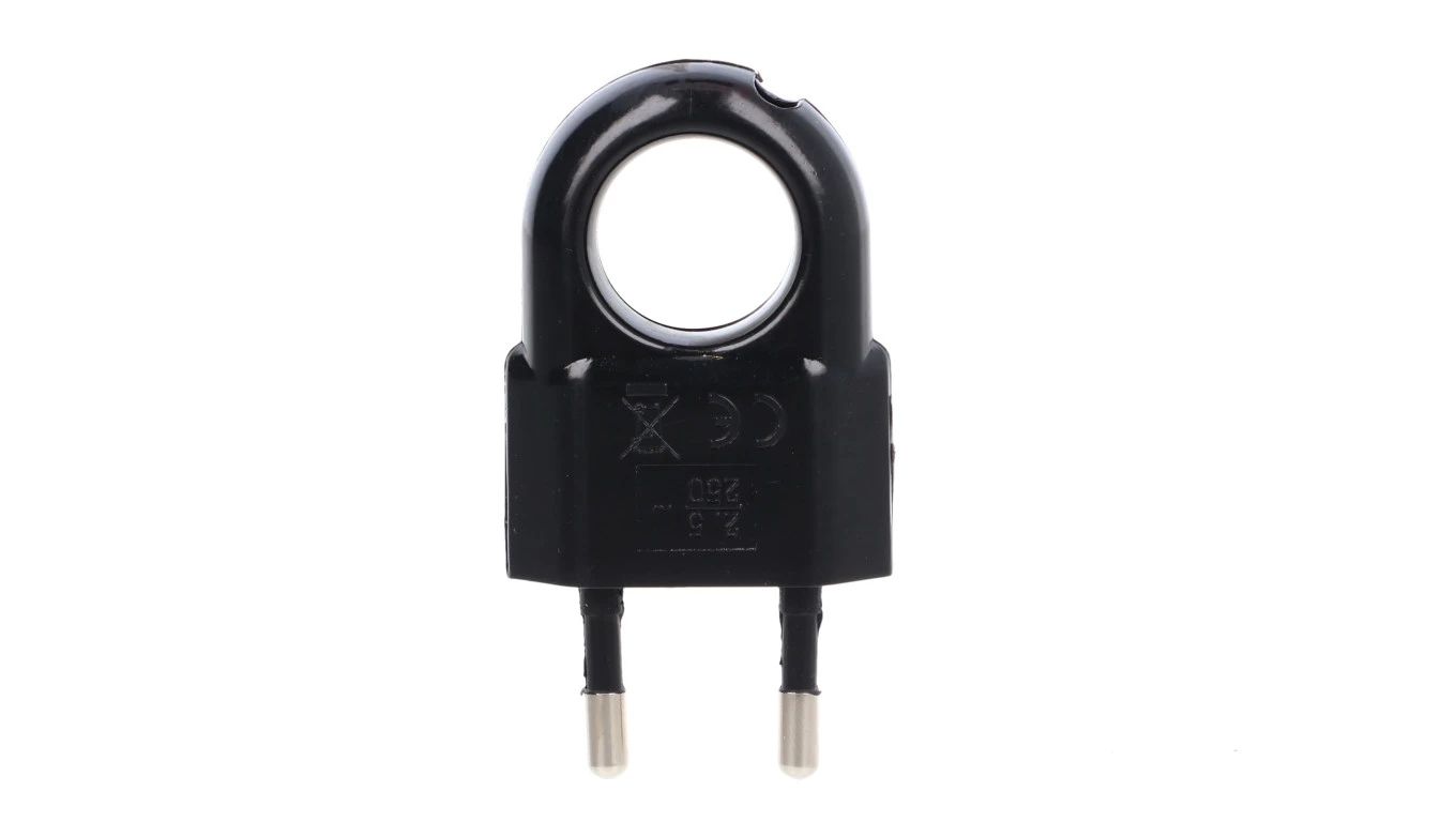 Wtyczka płaska z uchwytem b/u Euro 2,5A 250V czarna WTP2C-2