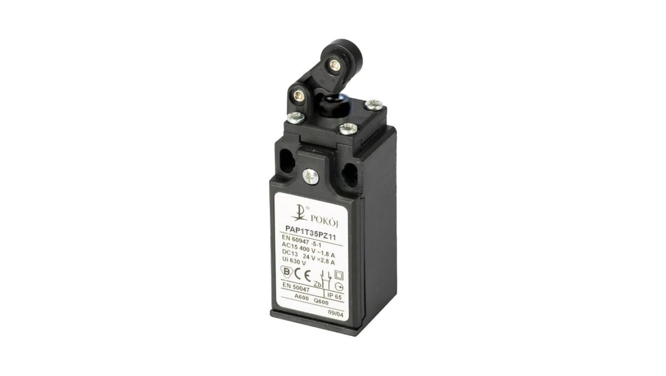 Wyłącznik krańcowy 1R 1Z migowy popychacz stalowy i dźwignia pozioma z rolką z tworzywa Ø12,5 PAP1T35PZ11 A37-1960