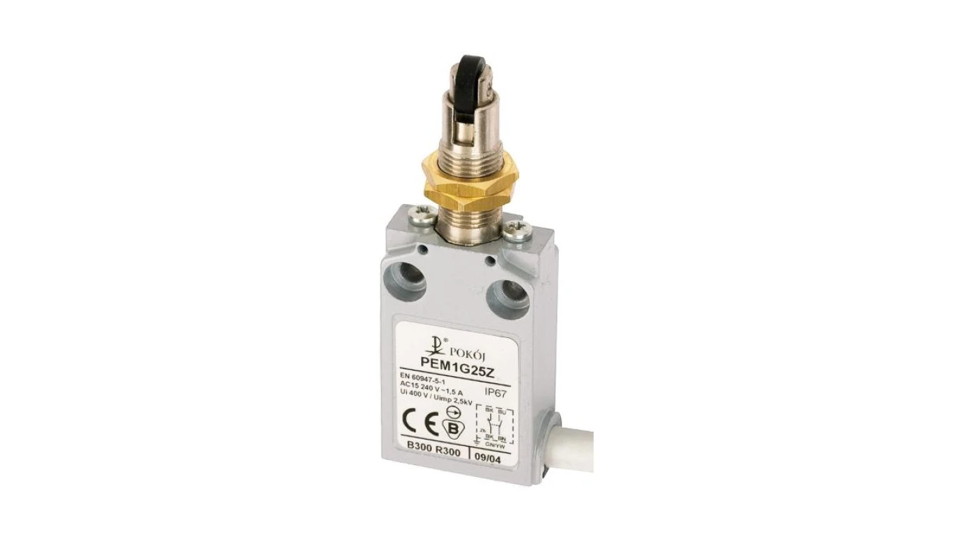 Wyłącznik krańcowy 1R 1Z wolnoprzełączający rolka z tworzywa Ø10,7 z mocowaniem za gwintowaną głowicę PEM1G25X A37-A91X