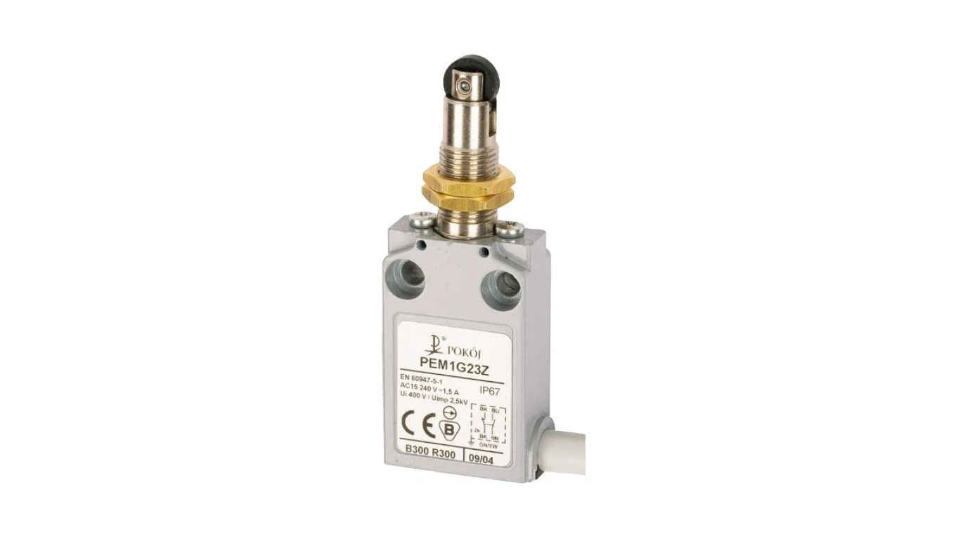 Wyłącznik krańcowy 1R 1Z wolnoprzełączający rolka z tworzywa Ø10,7 z mocowaniem za gwintowaną głowicę PEM1G23X A37-A89X