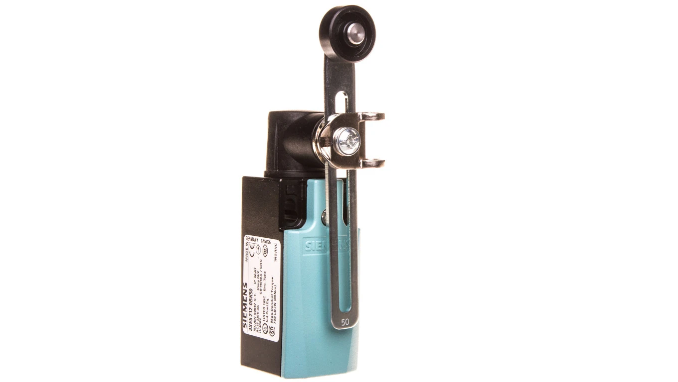 Wyłącznik krańcowy 1Z 1R pełzające metal 31mm dźwignia uchylna 100mm regulowana z rolką 19mm z tworzywa IP67 3SE5212-0BK50