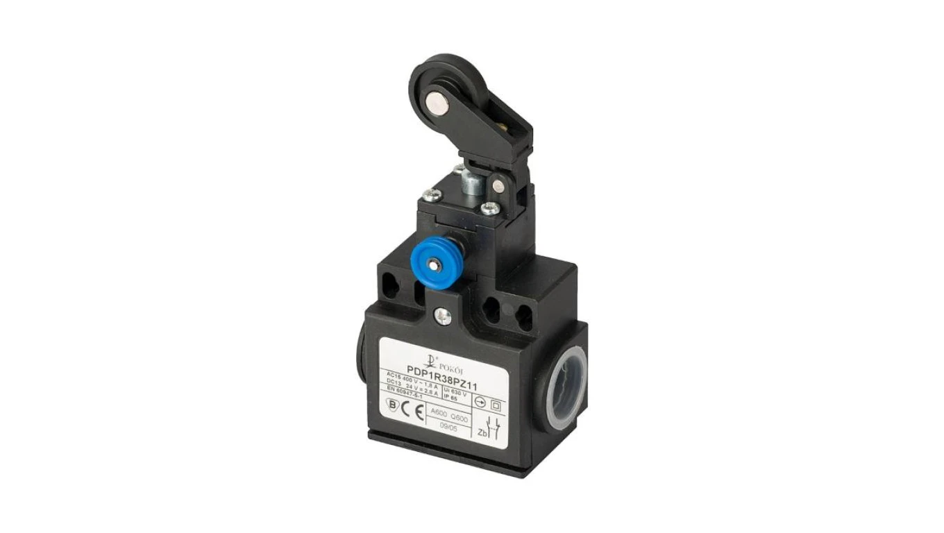 Wyłącznik krańcowy 2R wolnoprzełączający popychacz stalowy i dźwignia z rolką z tworzywa Ø22 z resetem PDP1R38PW02 A37-6R54