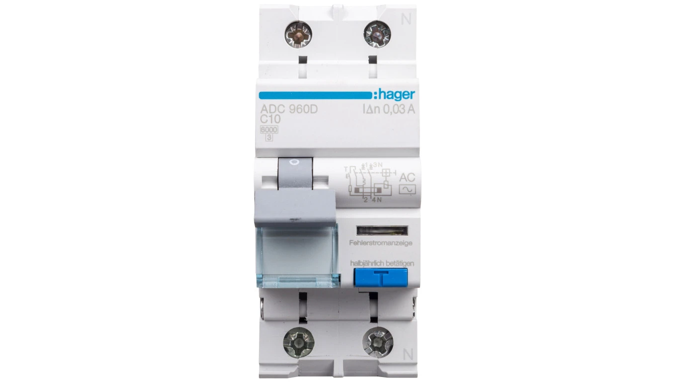 Wyłącznik różnicowo-nadprądowy RCBO 2P C10A 0,03A Typ AC ADC960D
