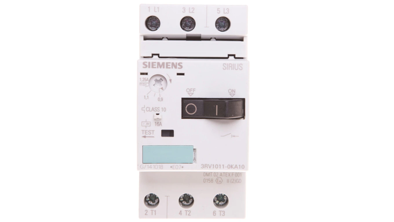 Wyłącznik silnikowy 3P 0,37kW 0,9-1,25A S00 3RV1011-0KA10
