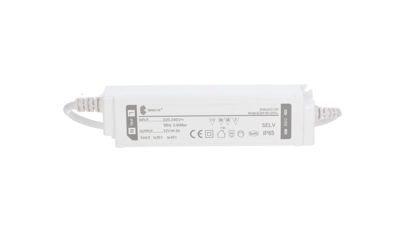 Zasilacz LED 12V DC 60W 5A IP65 /z zabezpieczeniami/ ZLDP 60-12YCL 19712-9039