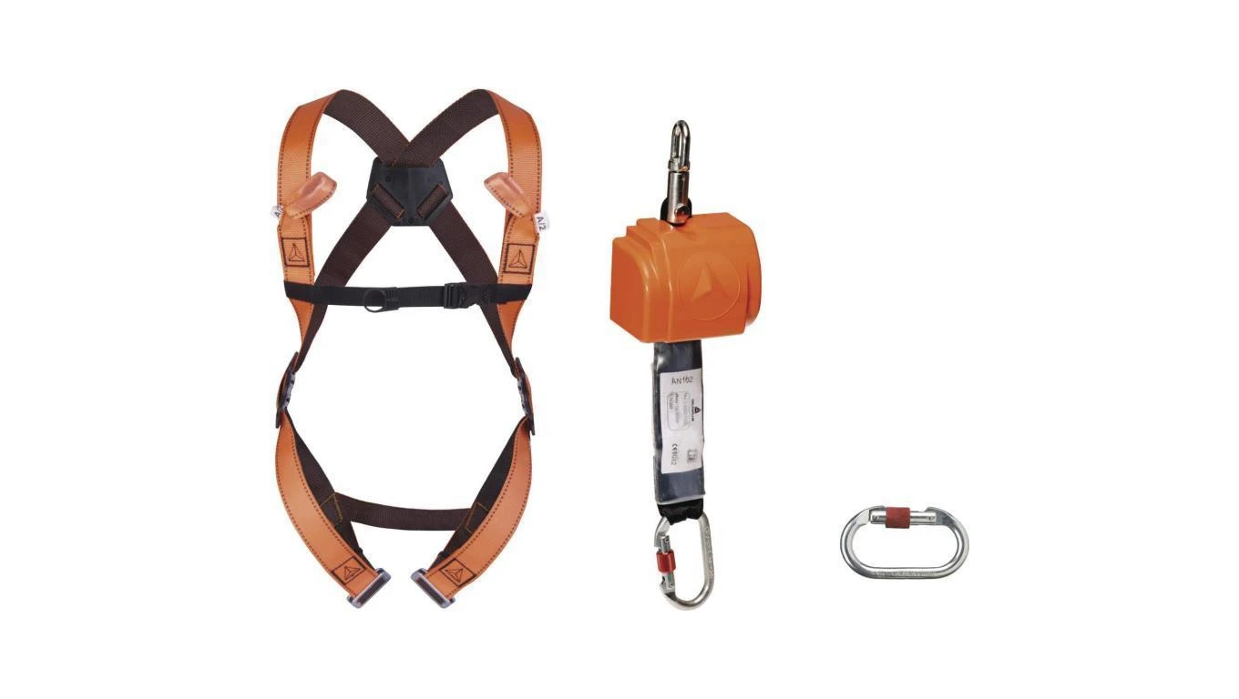 Zestaw gotowy do użytku: szelki z 2 punktami zaczepowymi(har12) urządzenie samohamowne z taśmą 2,5 m roz.S/M/L ANTI ELARA140GT