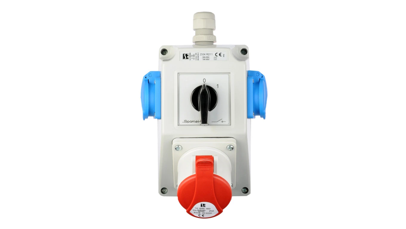 Zestaw instalacyjny z gniazdem 16A 5P+2x2P+Z (0-1) czerwony ZI04R211