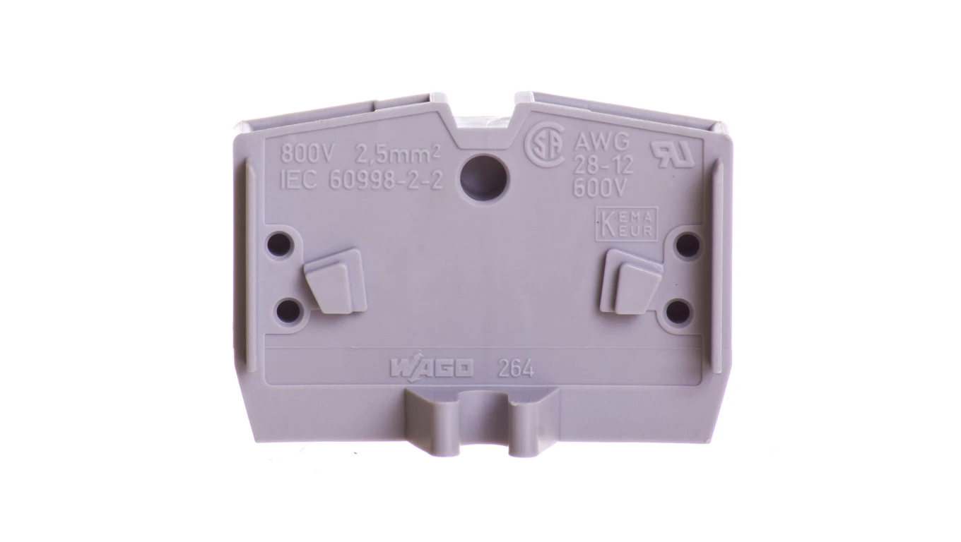 Złączka 2-przewodowa 2,5mm2 z mocowaniem śrubowym szara 264-301 /100szt./