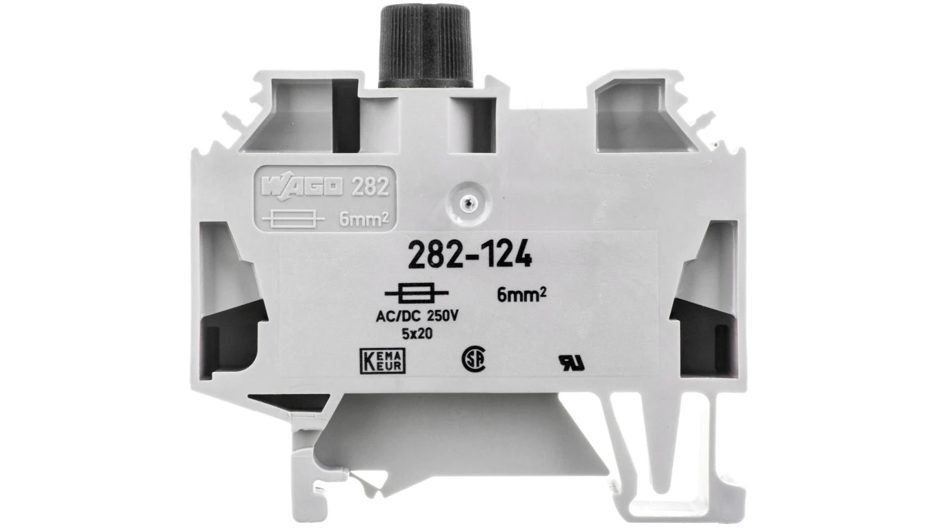 Złączka bezpiecznikowa 2-przewodowa 6mm2 szara 10A G 5x 20mm DIN 35mm 282-124 /40szt./